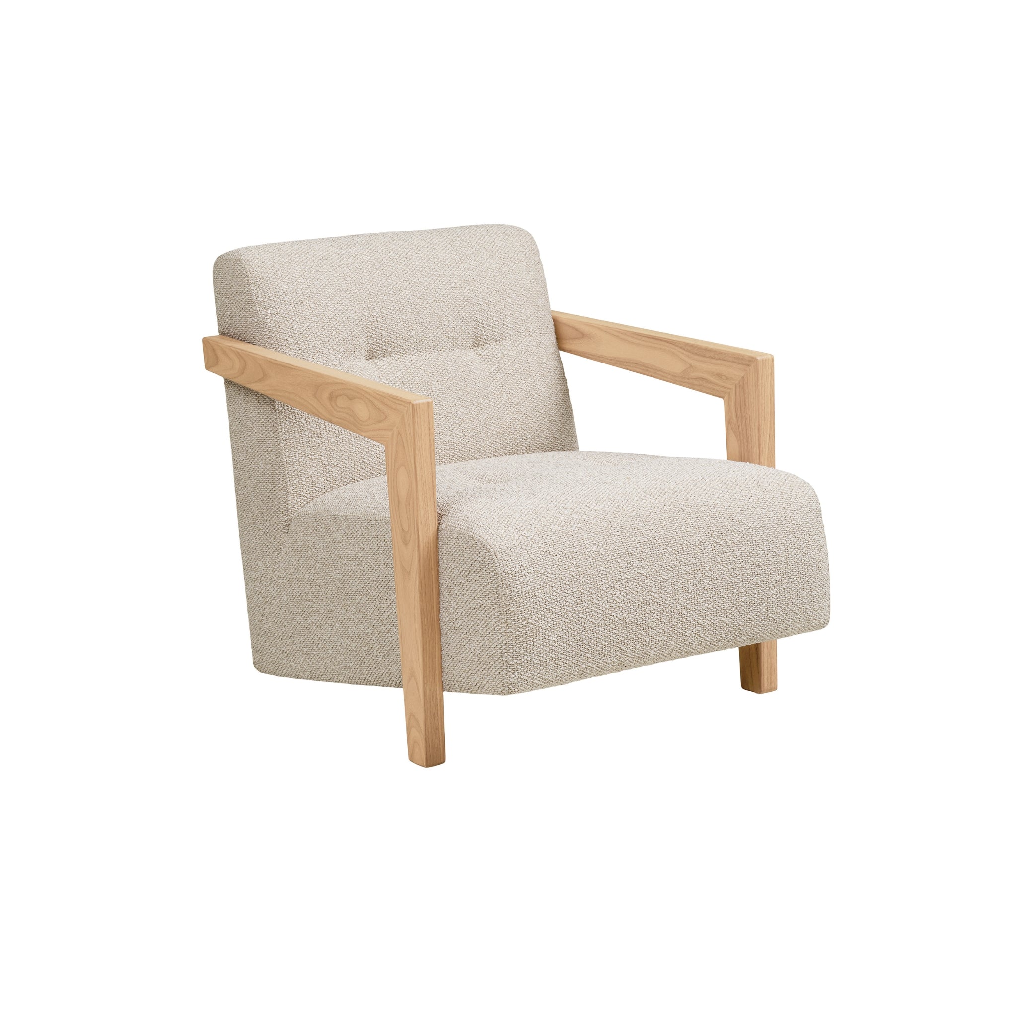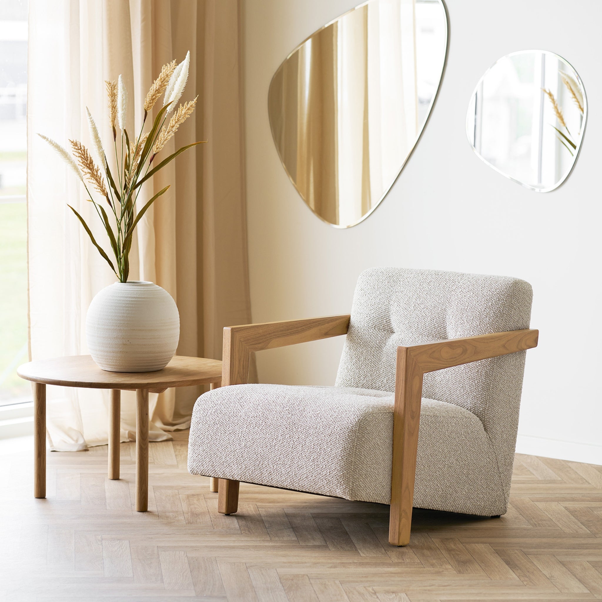 Caracas Loungefåtölj kombinerar skandinavisk enkelhet med naturlig elegans. Med sin robusta stomme i FSC®-certifierad ek och klädsel i mjukt beige tyg erbjuder den både stil och komfort. De generösa armstöden och den bekväma sitthöjden på 41 cm gör fåtöljen till en perfekt plats för avkoppling – i vardagsrummet, loungen eller som en inbjudande accentmöbel.