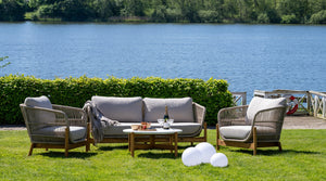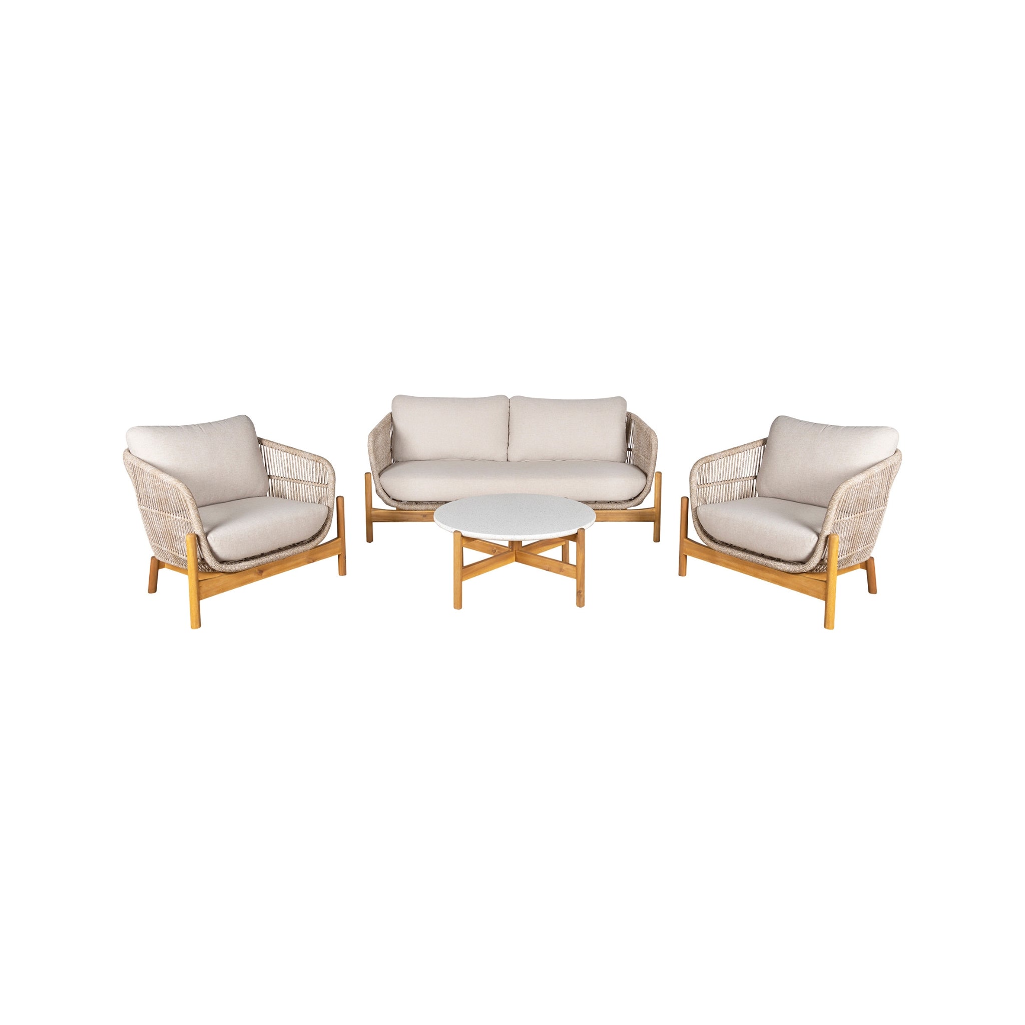 Ge din uteplats en naturlig och exklusiv känsla med Terracina Lounge Set. Tillverkat i hållbart FSC®-certifierat akaciaträ, kombinerat med 6 mm rund flätad repdetalj och en stabil ram i stål, förenar detta loungeset stil, komfort och lång livslängd.