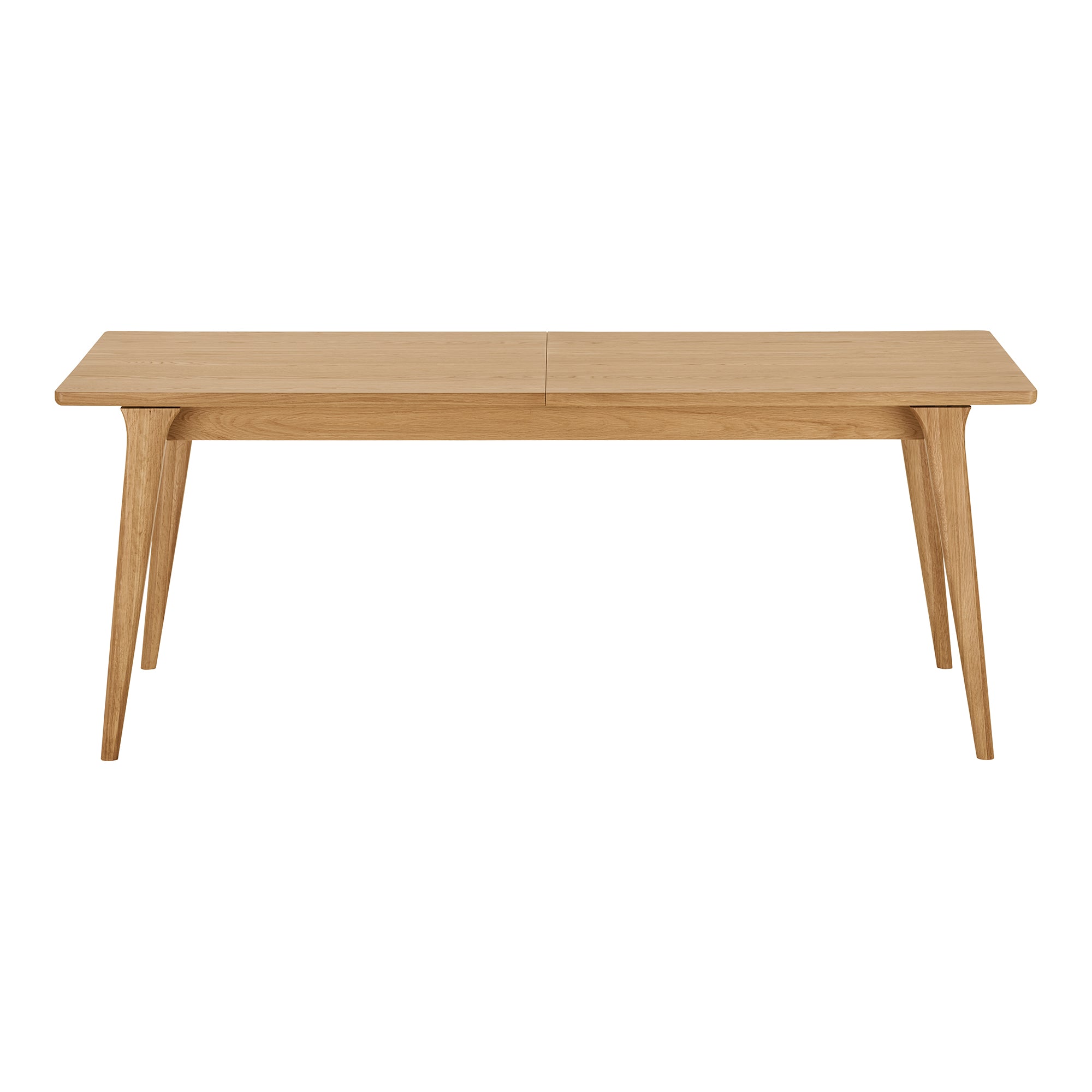 Bordet levereras med två iläggsskivor, vilket gör det möjligt att anpassa längden efter behov – från en generös vardagsstorlek till ett extra långt bord för större middagar och sociala tillställningar. De stabila benen i naturträ ger ett harmoniskt helhetsintryck och säkerställer god hållbarhet.