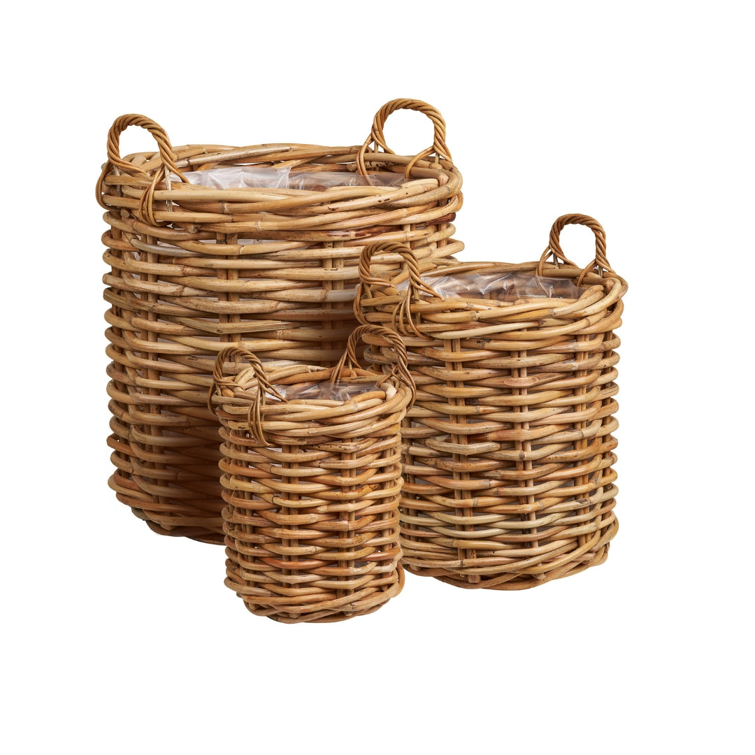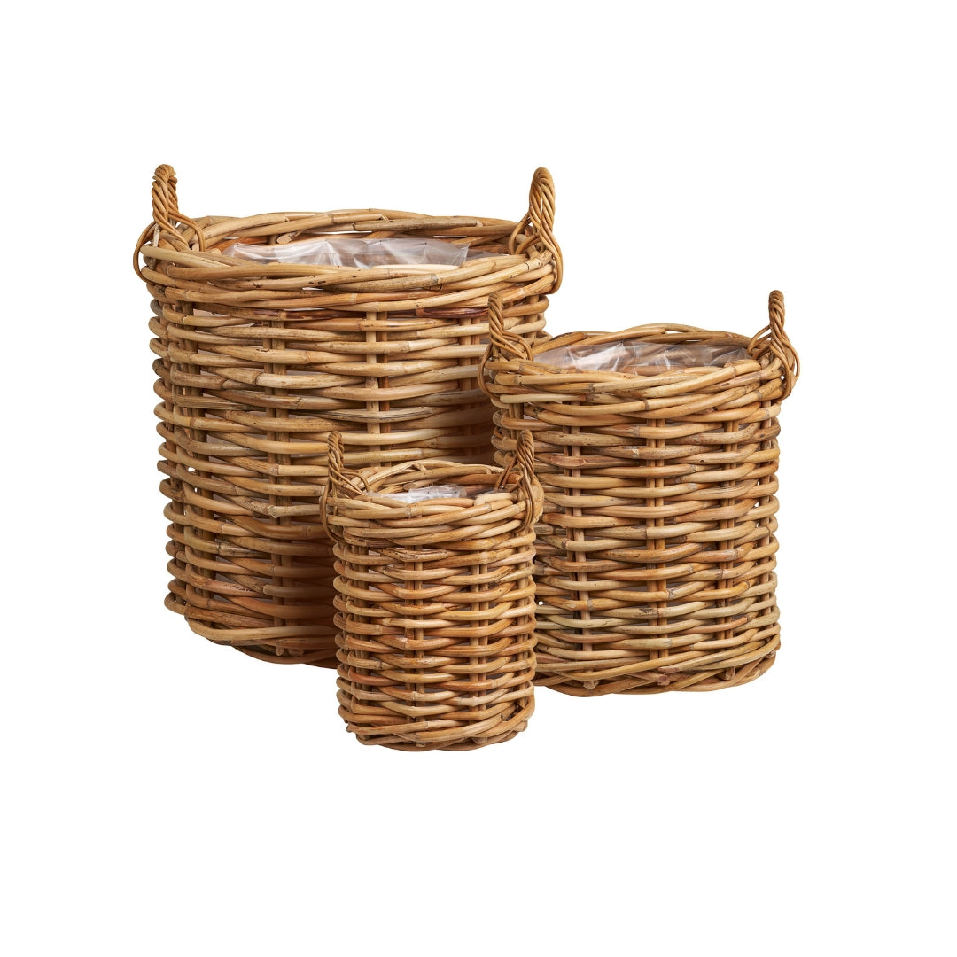 Burton planteringskorgar i naturlig kubu-rotting är perfekta för blommor och gröna växter både inomhus och utomhus. Det handvävda rottingmaterialet ger ett levande och naturligt uttryck som passar lika bra på terrassen, i trädgården som i uterummet.