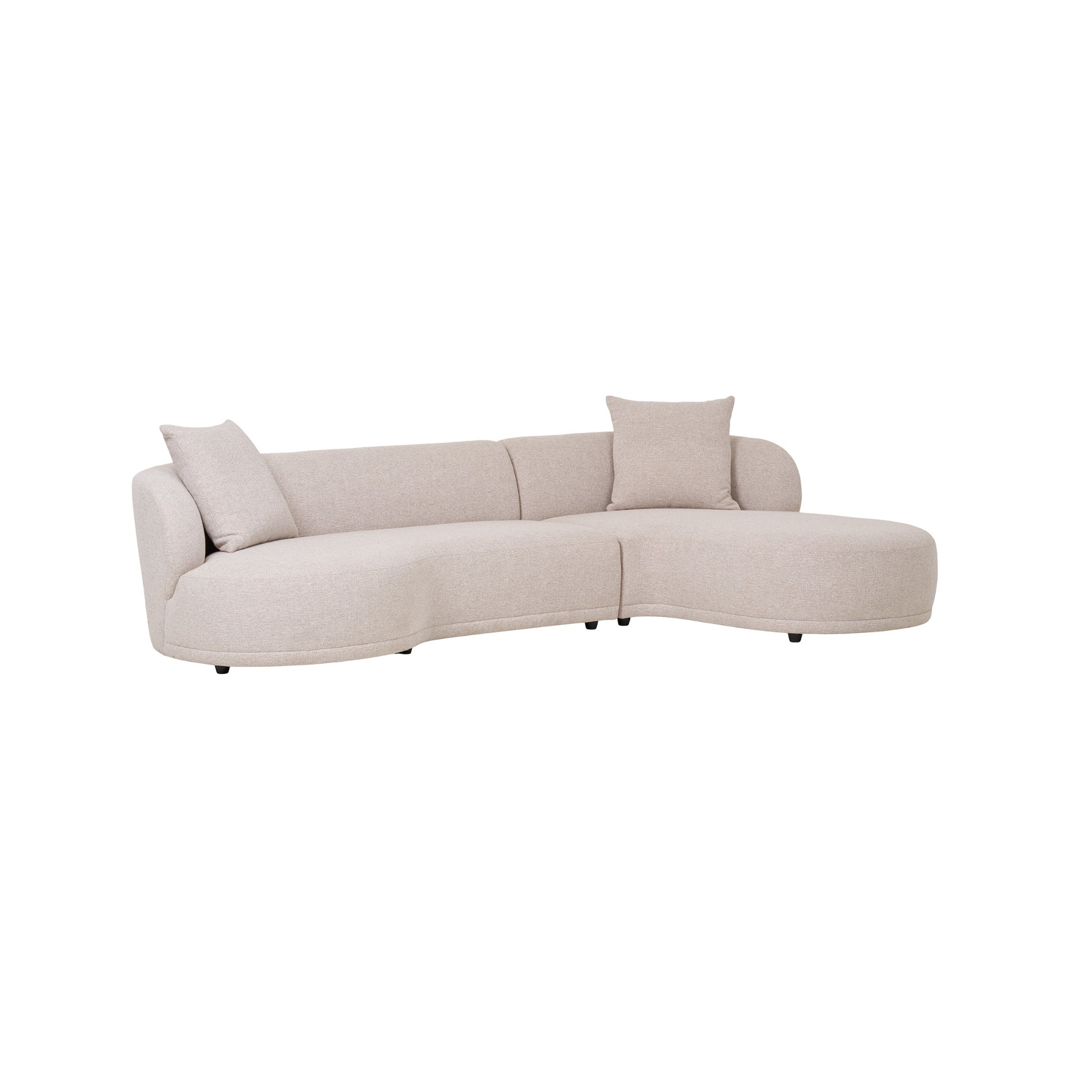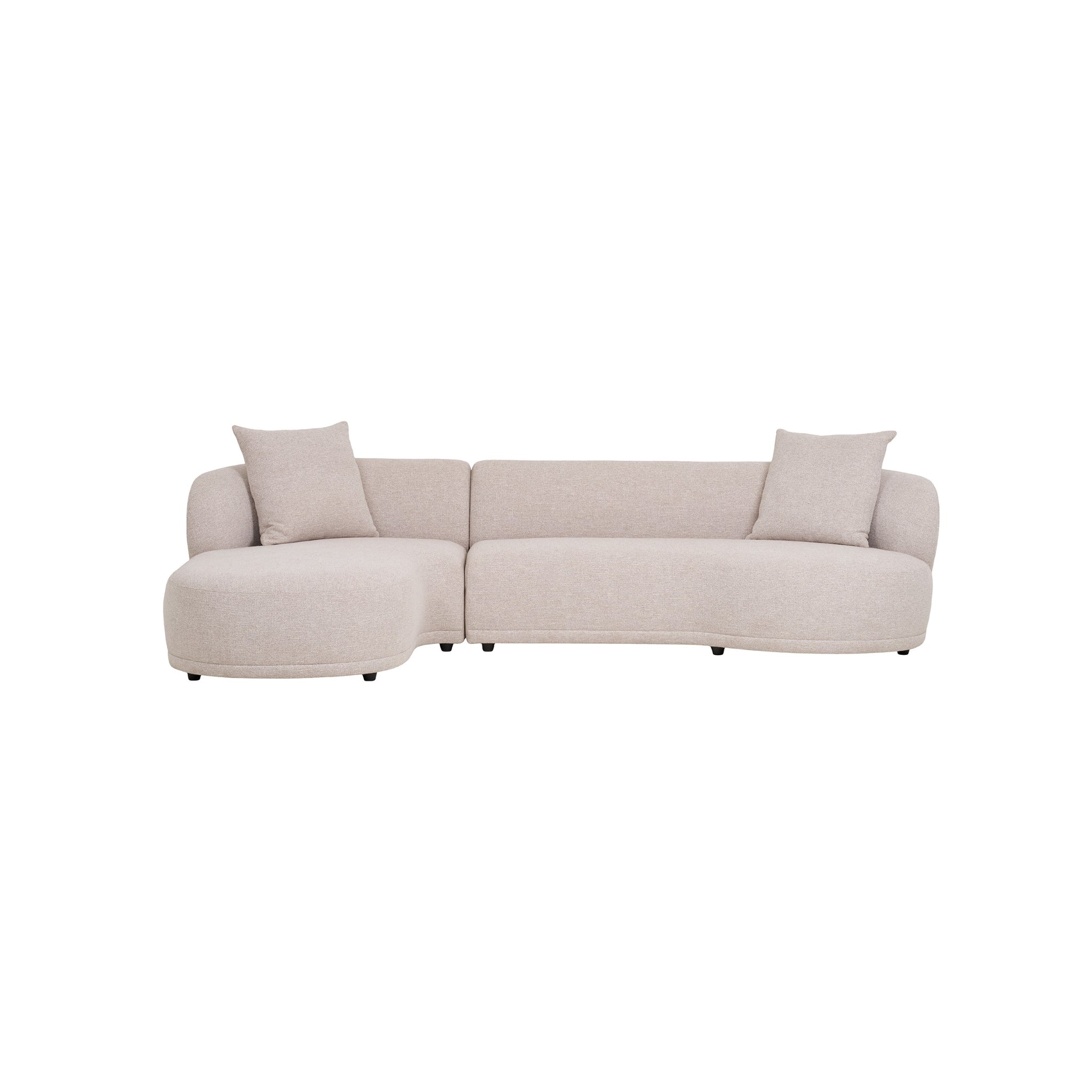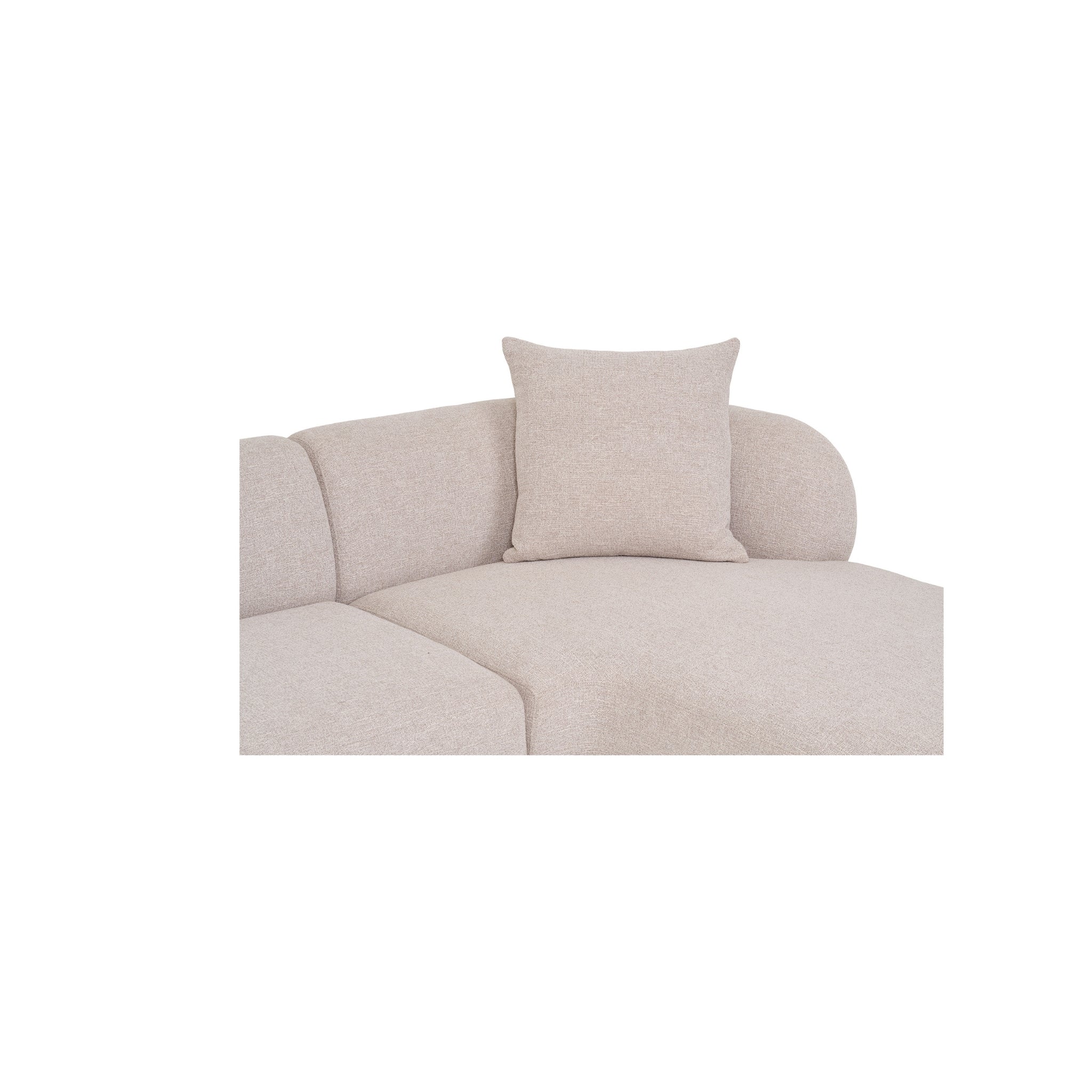 Kingston lounge soffa är en exklusiv och rymlig hörnsoffa som kombinerar modern design med hög komfort. Klädd i ett slitstarkt tyg (72% polyester, 28% akryl) i naturlig ton och med generöst sittdjup blir den en elegant mittpunkt i vardagsrummet eller loungen.