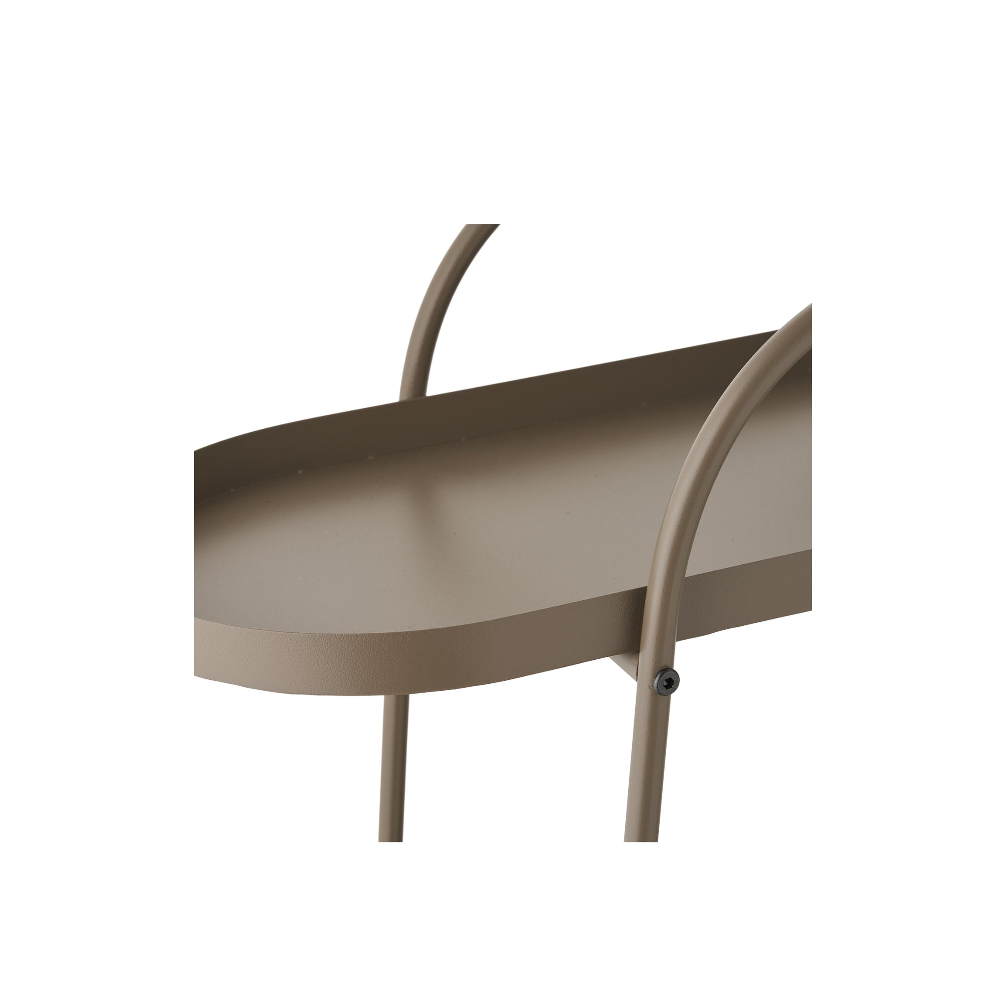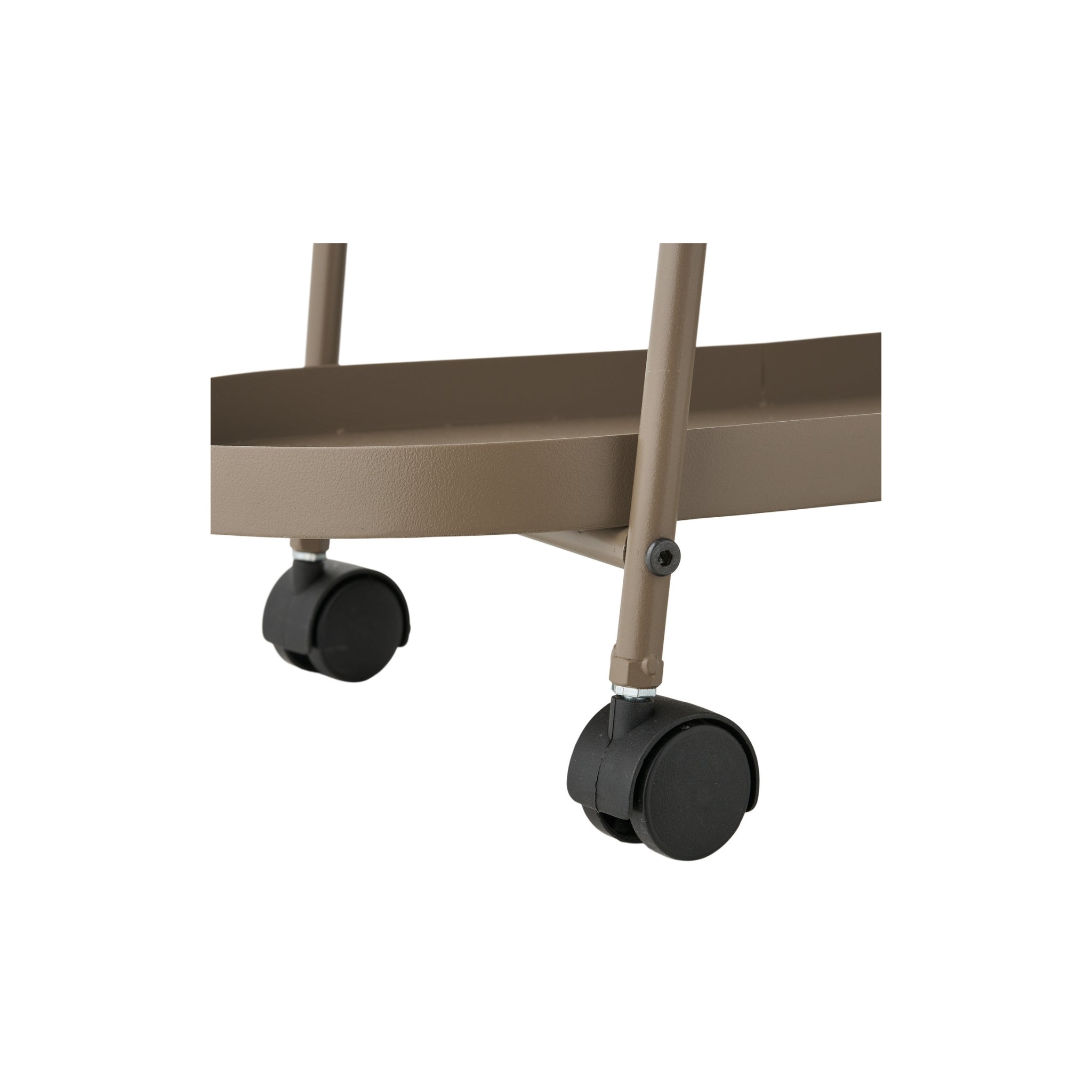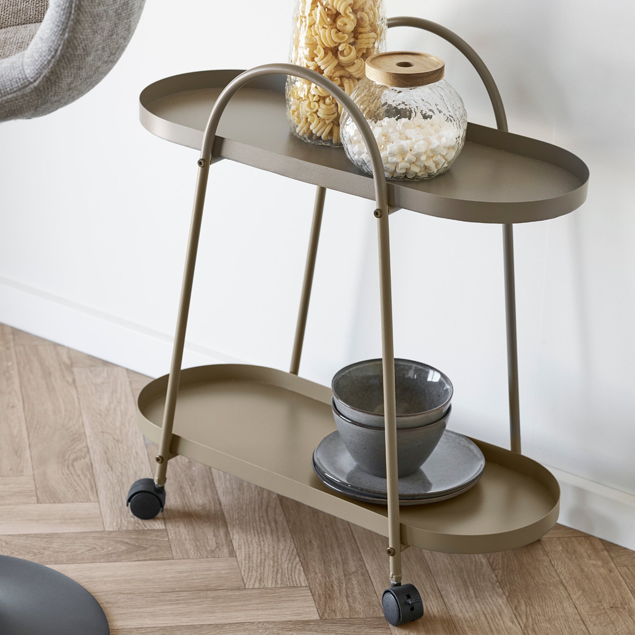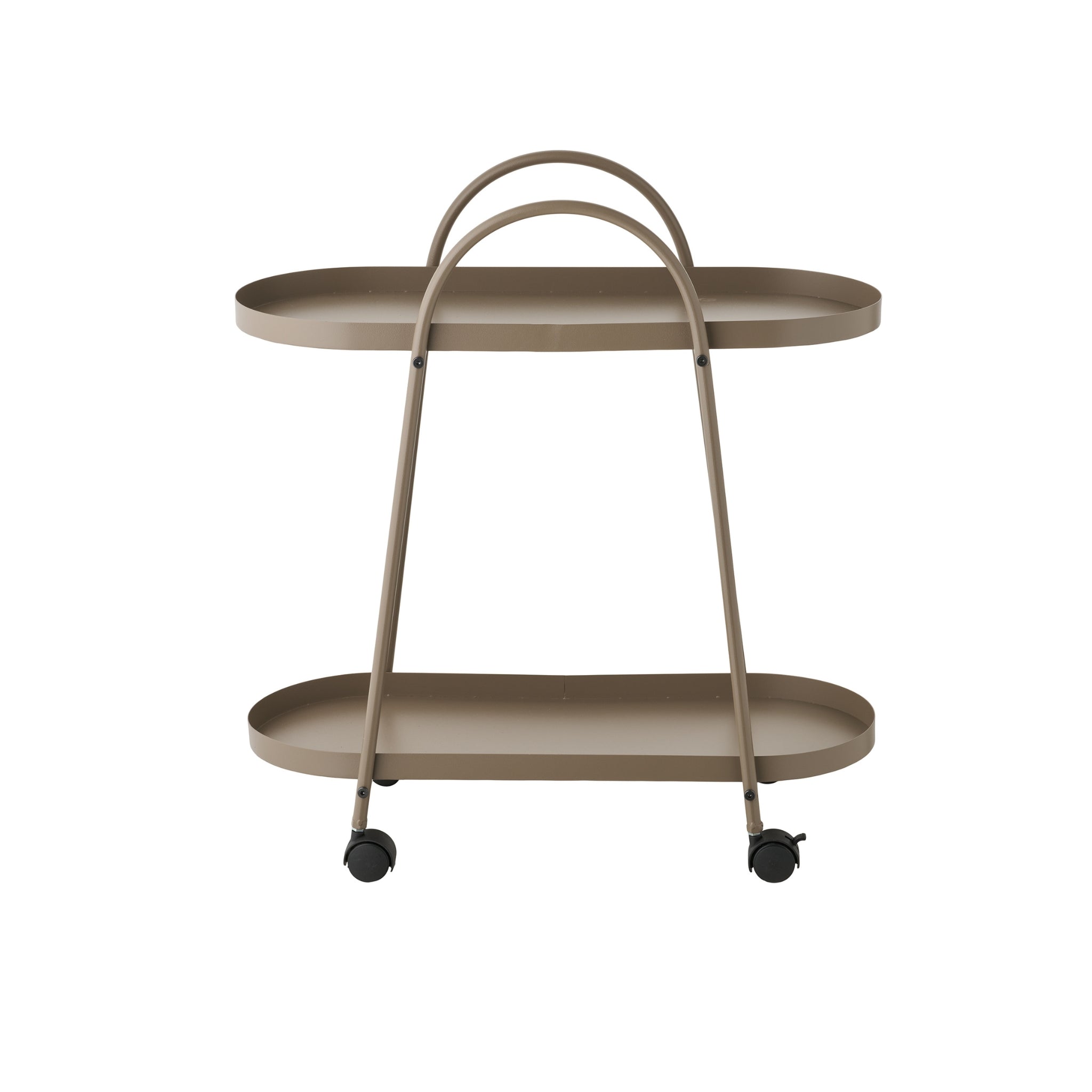 Den bruna ytan ger en varm och tidlös känsla, samtidigt som konstruktionen i stål gör vagnen både stabil och lätt att underhålla. Tack vare sina två hyllor finns gott om plats för glas, flaskor, snacks eller dekorationer.