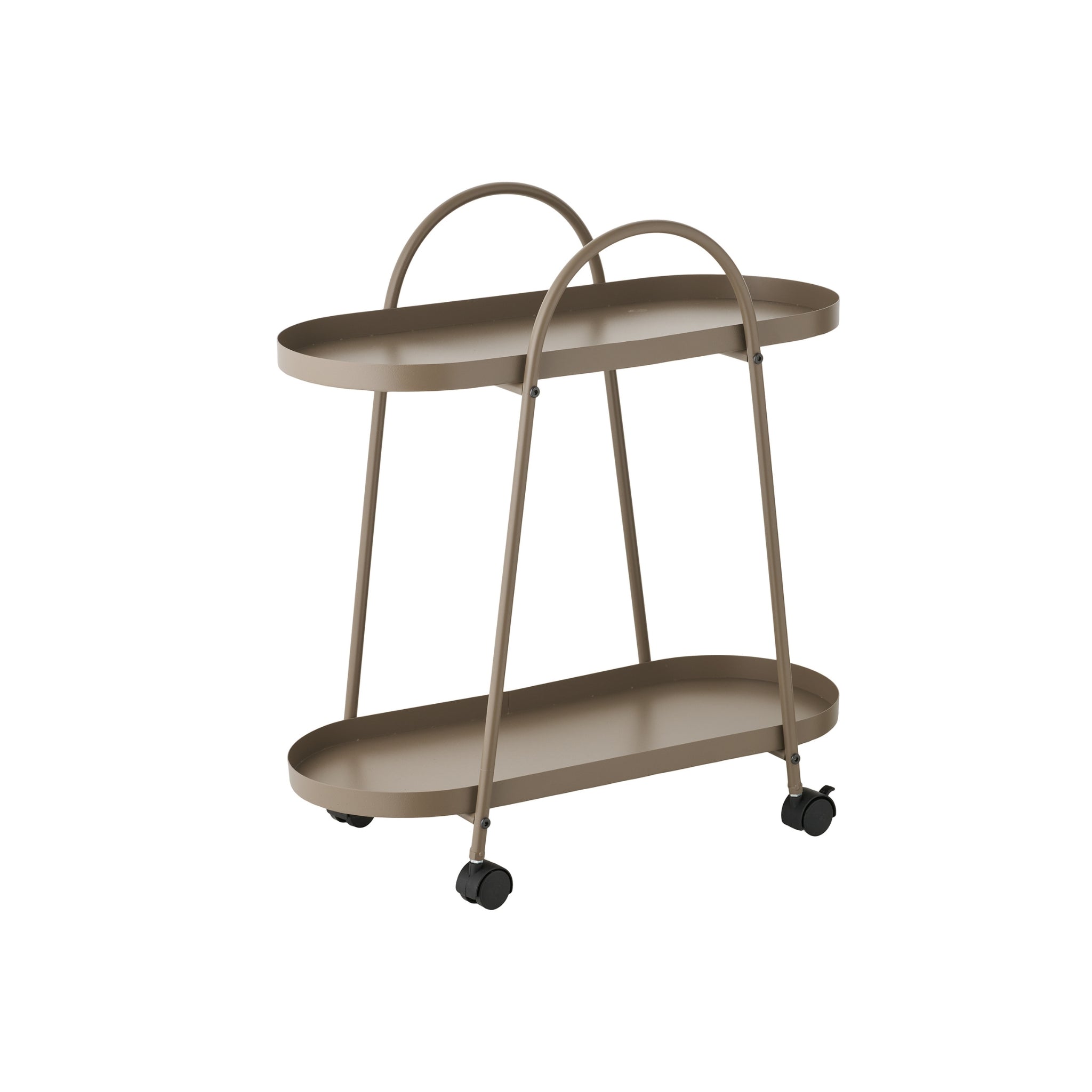 Köp Empoli barvagn i brun stål. Praktisk serveringsvagn med två hyllor – perfekt för glas, flaskor och snacks. Stilren design för hem och uteplats.